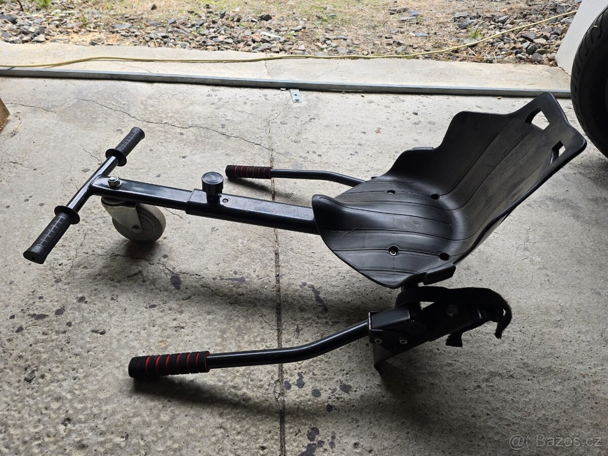 sedadlo na elektrické kolonožky. Hoverkart stačí pomocí speciálních upevňovacích pásů připevnit k tělu kolonožky a následně už si můžete užít bezstarostnou jízdu v sedě. Nabízí také možnost uzpůsobení délky, aby jej mohlo používat více jezdců. Tento model má bugi konstrukci pro zábavnou jízdu a udržuje nejvyšší možný standard bezpečnosti.