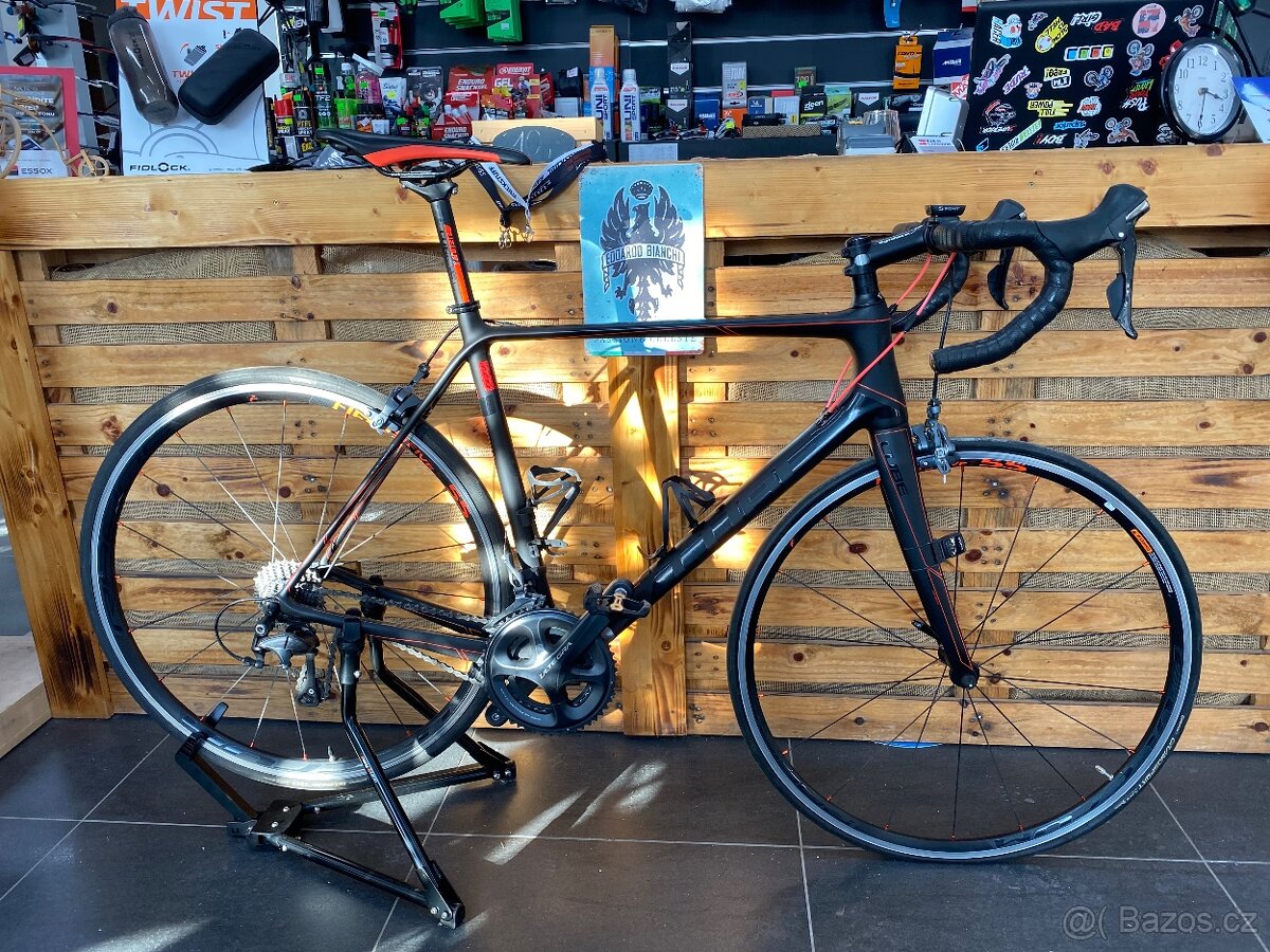 Vybaveno Shimanem Ultegra 2x11. Klasické brzdy.