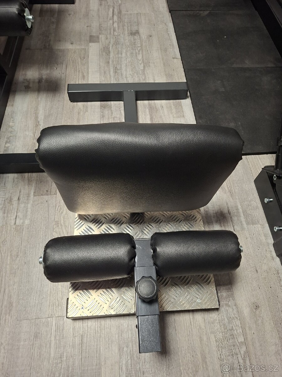 Válečky lze nastavit nahoru-dolů a dopředu-dozadu.Opěrná deska lýtek jde nastavit nahoru-dolů.