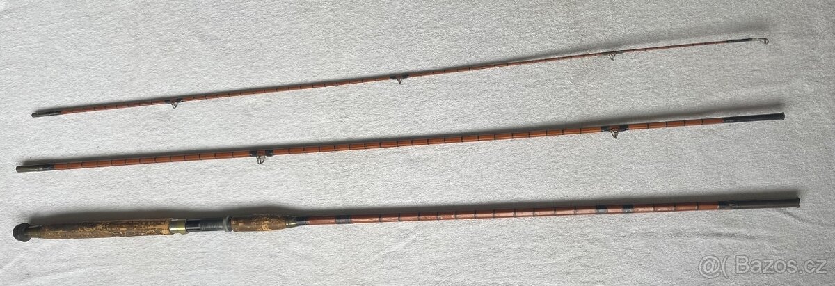Prodám starý rybářský prut ze štípaného bambusu značky TOKOZ, délka 3,6 m na jednom místě rozlepený a u jednoho očka je třeba obnovit ovin.