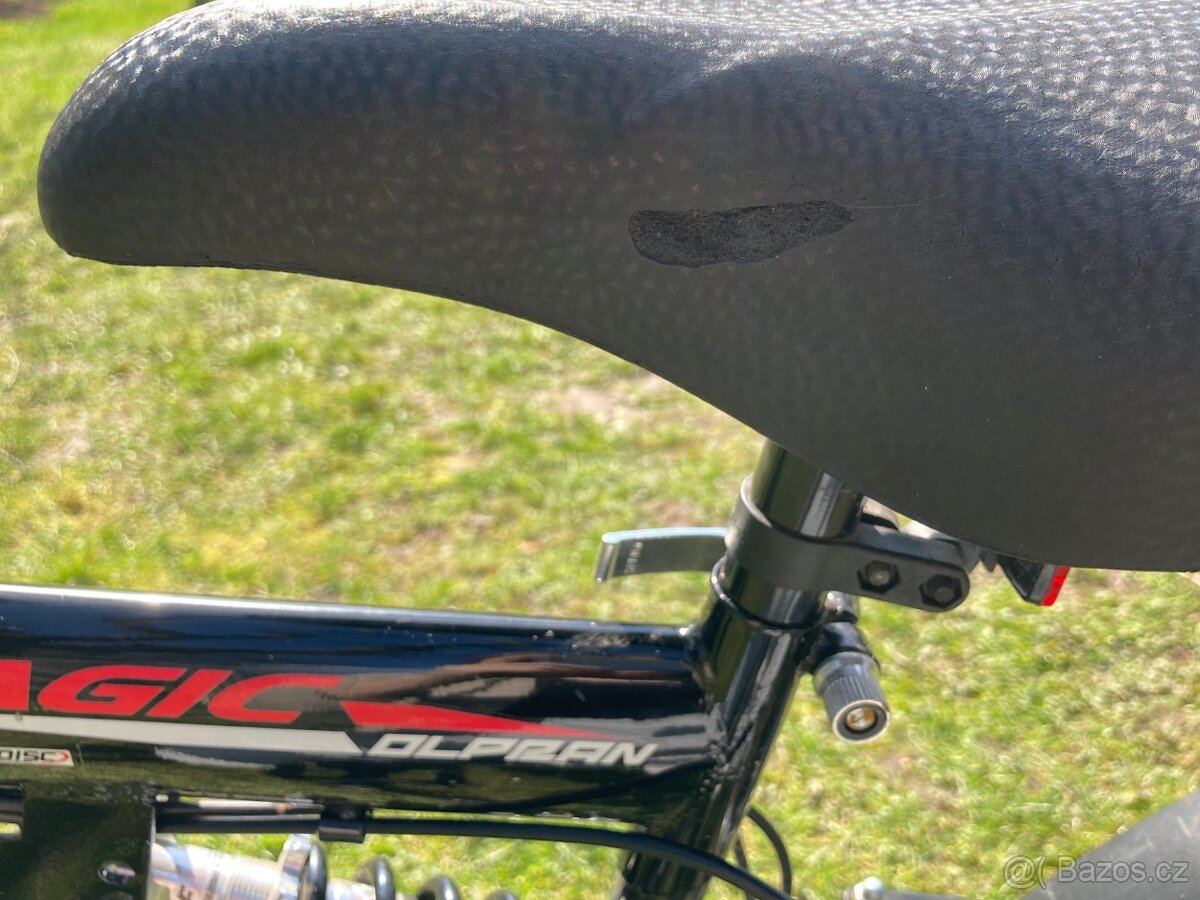 Prodám juniorské horské kolo Olpran Magic Disc 24. Odpružené přední vidlice a rám. Na předku kotoučová brzda. Výbava Shimano. Vhodné pro děti 8-11 let. Kolo je běžně používané. Drobná vada-odřená sedačka-na funkci nemá vliv.