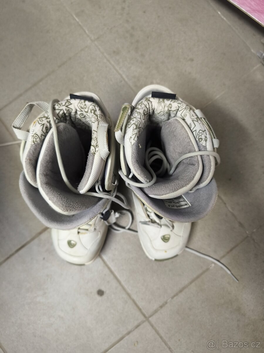 Snowboard Burton komplet 125 + 36,5 - [11.2. 2026]Snowboard Burton Deja Vu Smalls, velikost 125 cm, vázání Burton Scribe, boty Burton Mint 36,5.