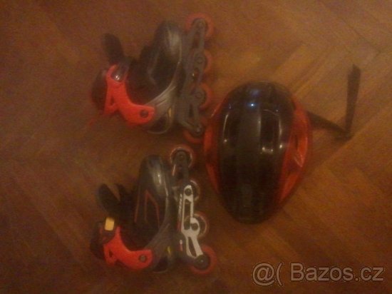 Prodám dětské kolečkové brusle nastavitelná vel.32-35 černo-červené barvy.V ceně přilba ve stejné barvě.Na SMS nereaguji.