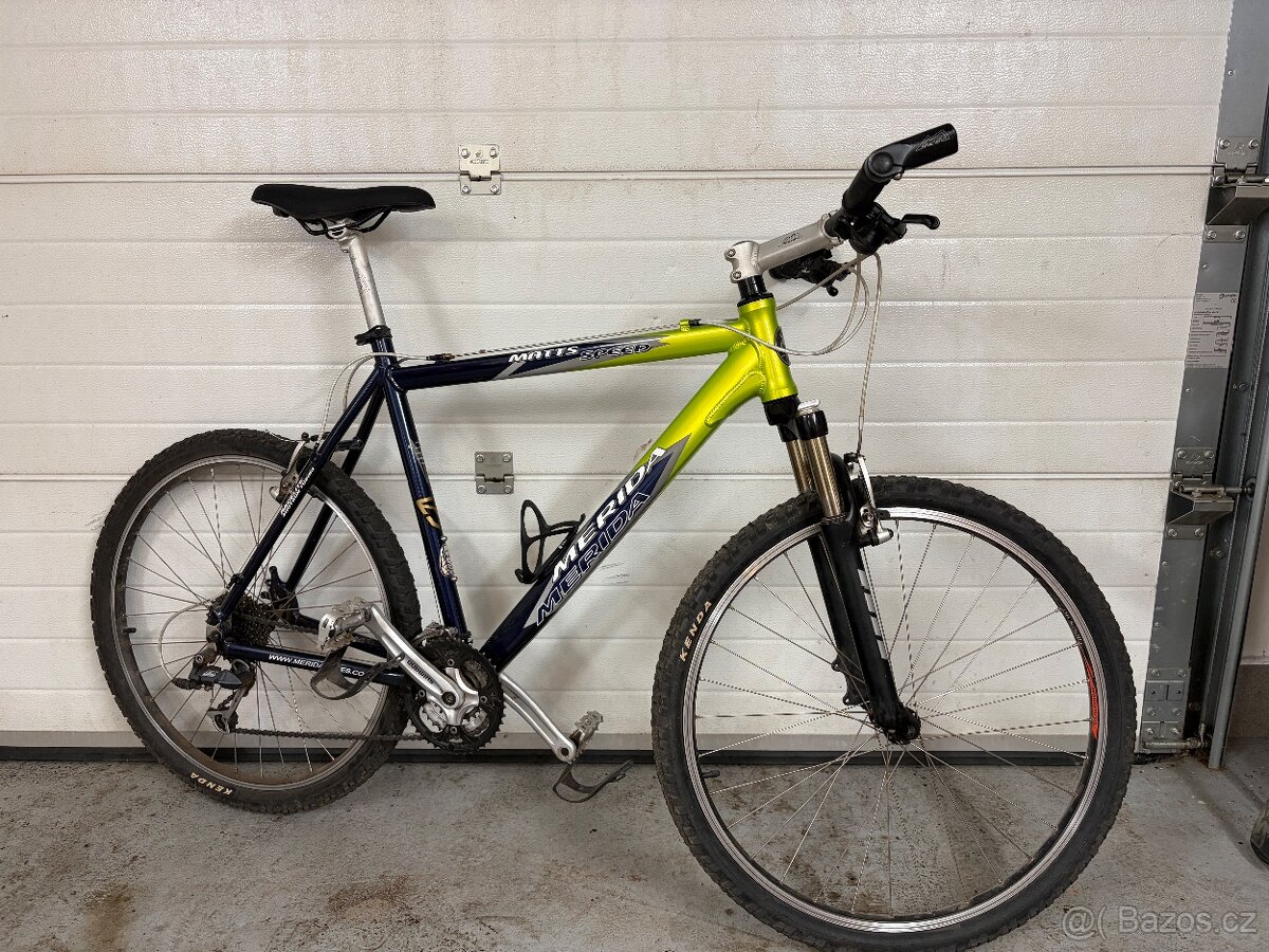 Prodám horské kolo MERIDA Matts Speed. Rám velikost 22". Brzdy Shimano Deore V-brake. Převody 3x9 (Shimano Deore a Shimano Deore LX). Přední vidlice SR Suntour. Kolo bylo užívané hobby. Je v hezkém stavu. V roce 2025 měněny oba pláště.