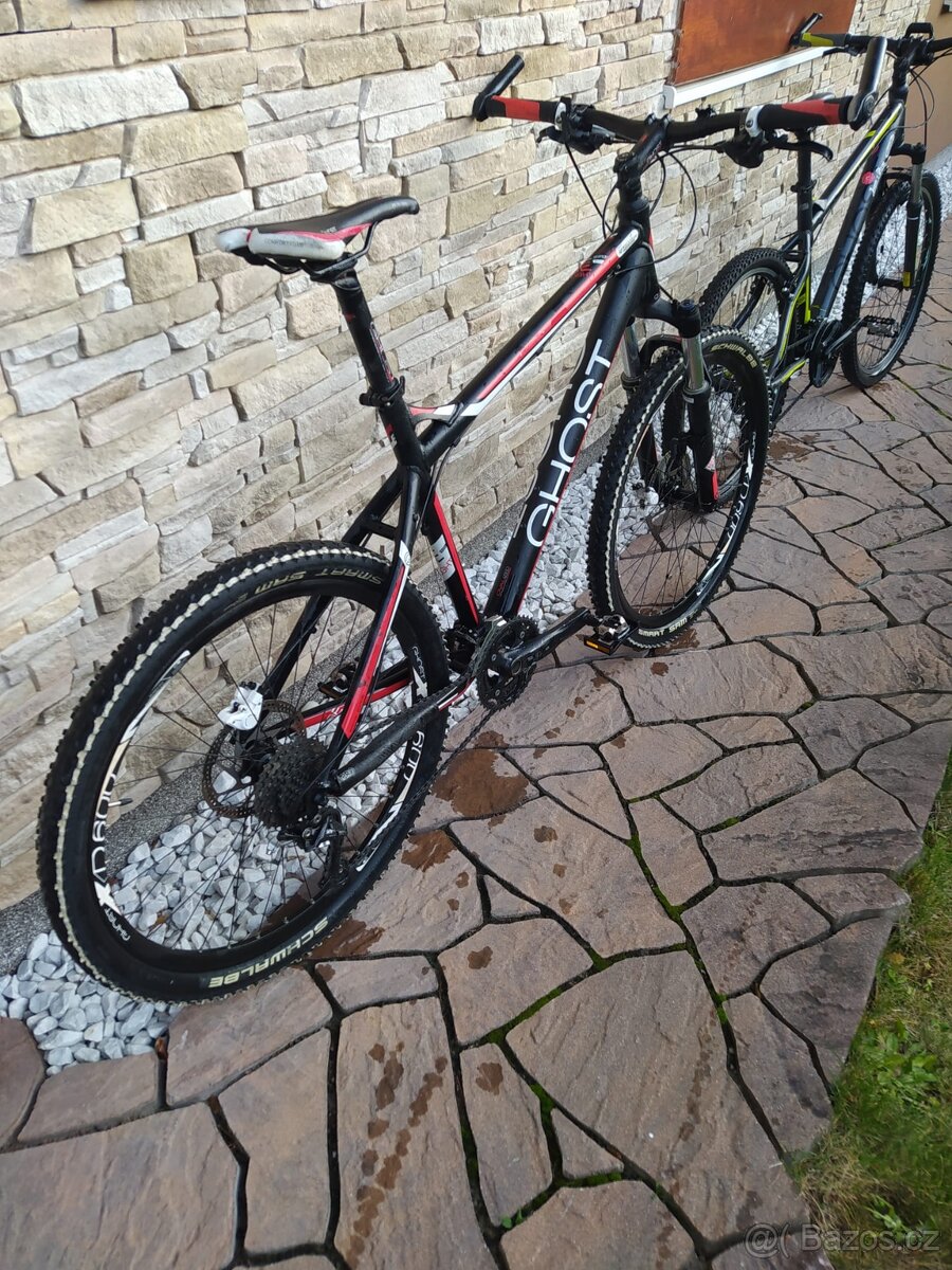 Prodám pánské horské kolo GHOST 26", lehký hliníkový rám, velikost vhodná pro postavu 175-185 cm, převody 3x9, přehazovačka a brzdy Shimano, přední odpružená vidlice, pláště Schwalbe Smart Sam, velmi pěkný vzhled černo-červené provedení, používané 3 roky, udržované, zachovalé, připravené k okamžitému použití. Dohoda možná