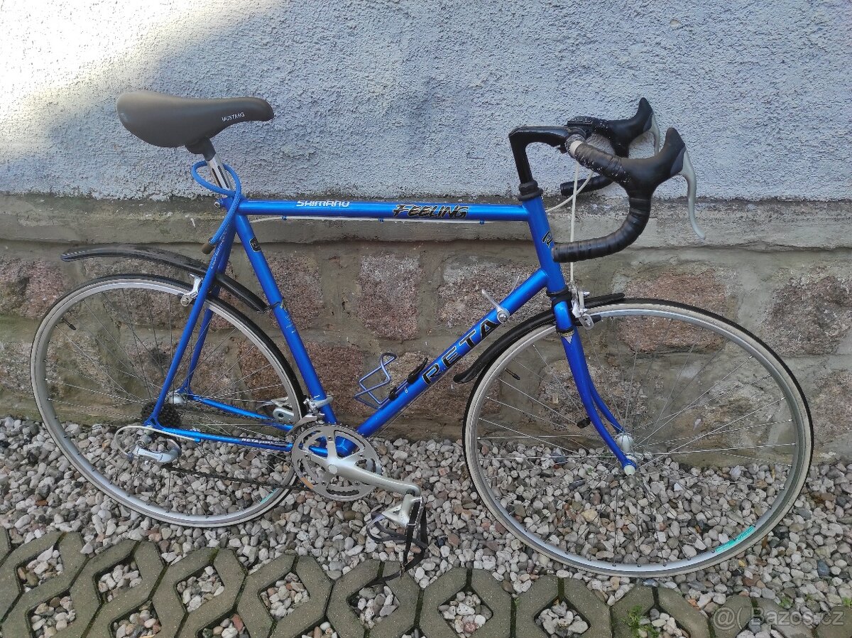 Prodám silniční kolo Reta Shimano 105. Kolo bylo velmi málo používáno a pak odloženo a asi 10 let nepoužíváno vůbec. Celkově má najeto max. 2000km. Vhodné je pro postavu od 170cm do 180cm. Má ručně vařený rám a všechny komponenty jsou Shimano 105. Má 2x7 rychlostí a je velmi lehké a rychlé. Na kole jsou pologalusky, ale ve špatném stavu, po výměně duší a plášťů je ale kolo plně funkční a provozu schopné, téměř jako nové. Nové stálo před 15 ti lety 25000Kč a nyní nechám za 5000kč. Osobní převzetí v Říčanech u Prahy.