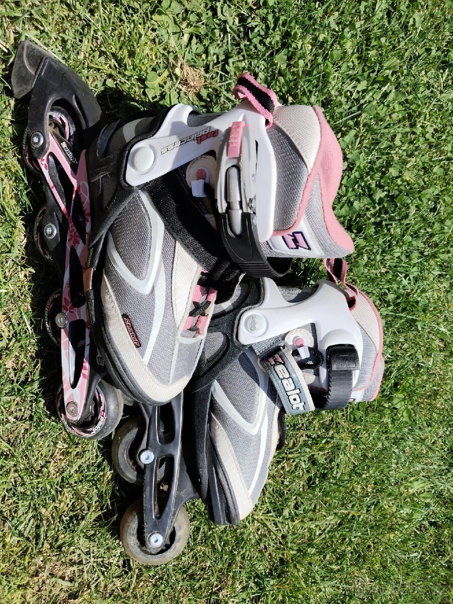 Prodám dětské kolečkové brusle. Nastavitelná velikost 29-32.