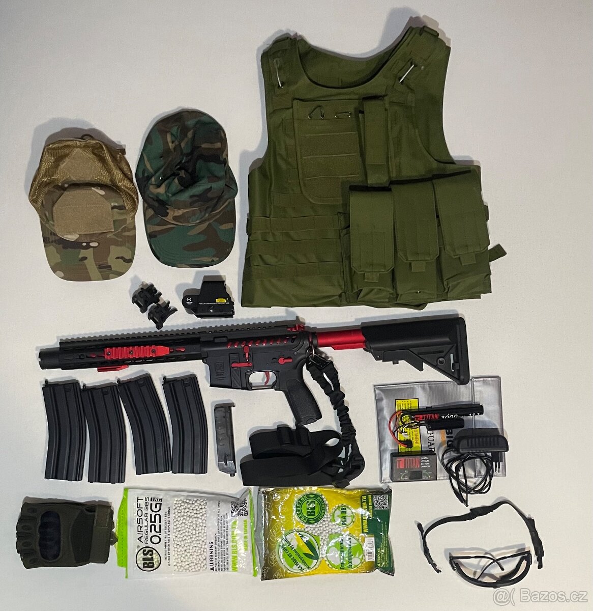 Airsotftová elektrická zbraň + vybavení