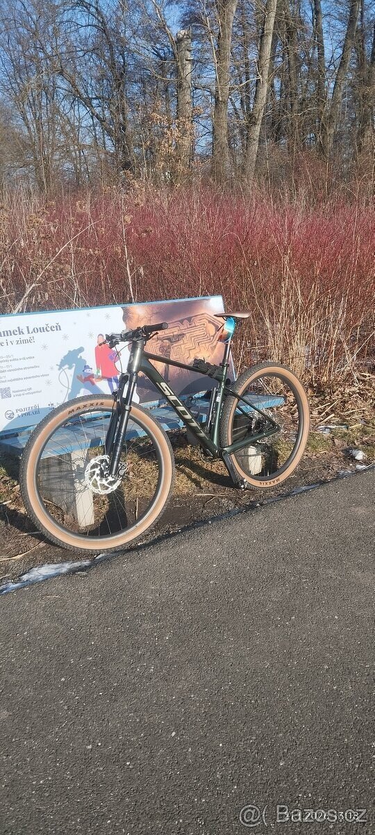 Prodám zánovní horské kolo Scott Scale, kupováno 08/25 na prodejně endorphin Hradec Králové.Rám hliník,velkost rámu L-(176-186cm-unisex). Osazení Deore XT, řazeni Deore 12s, kvalitní brzdy Shimano MT501, našlapaná vidlice FOX 32 Float Rhythm Grip,