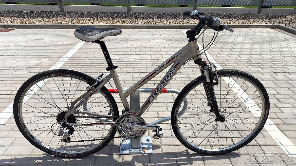 Prodám krosové kolo na hliníkovém rámu velikost 17" na postavu cca 145-175cm. Odpružená uzamykatelná vidlice. Nastavitelný představec. Osazení Shimano Alivio. Dvojité ráfky. Nerezové výplety. Velikost kol 28" gelové ergonomické sedlo. kolo je po servisu. Celé seřízené a plně funkční. Prodám za 3800,-