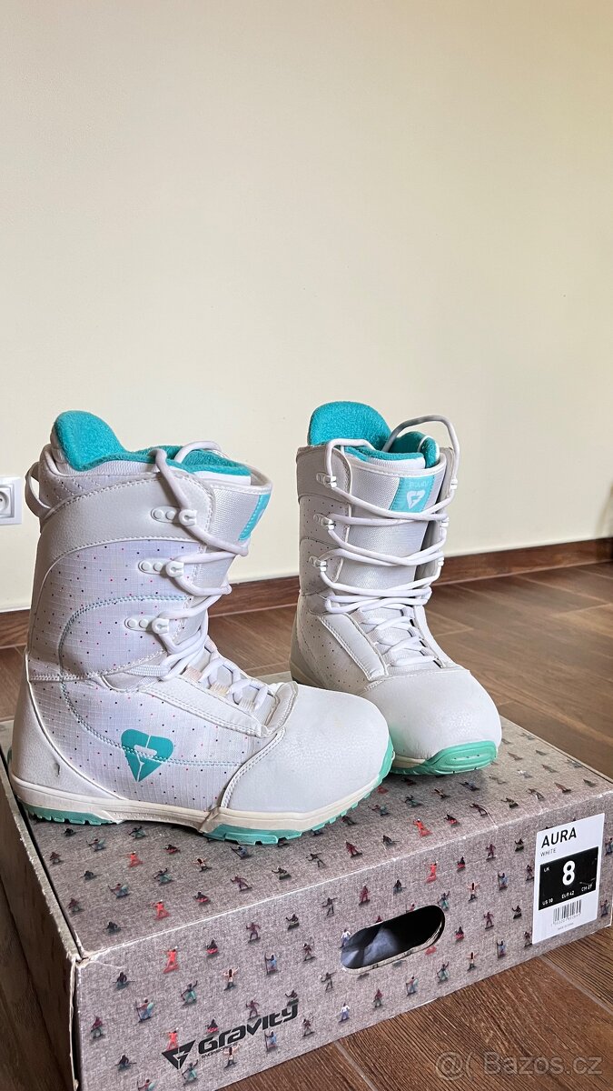 Prodám snowboardové boty Gravity Aura White + vázání Gravity.