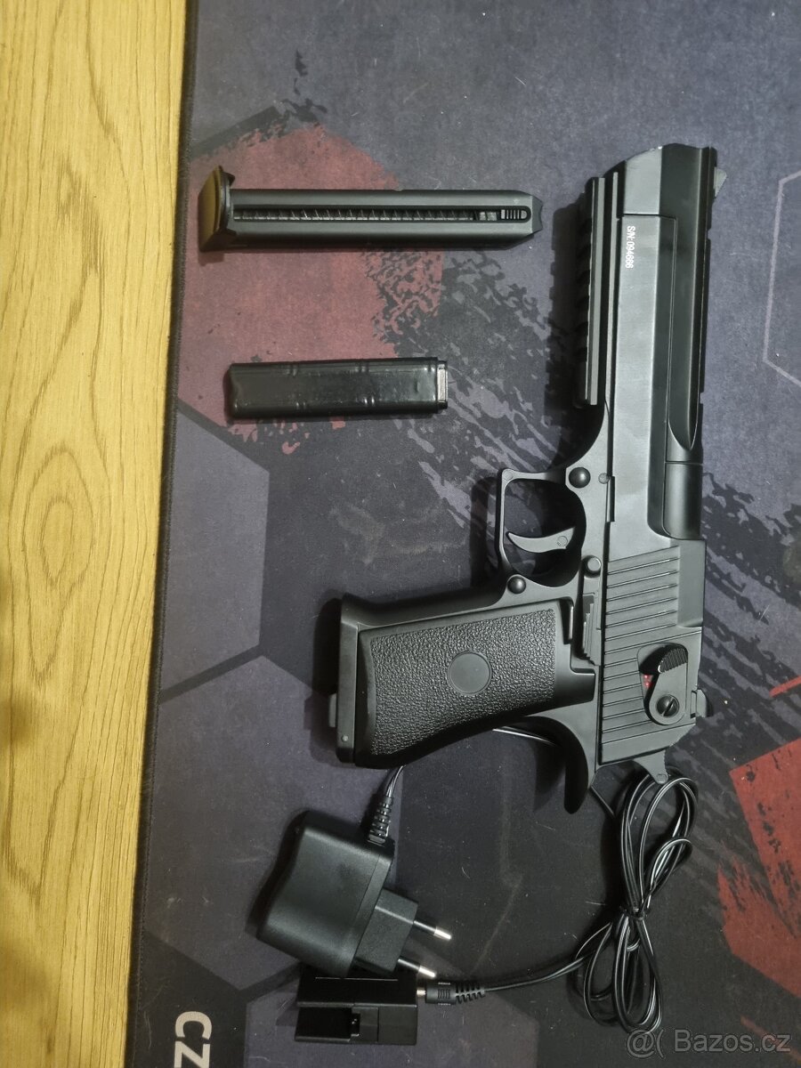 Desert Eagle elektrický s jedním zásobníkem a jednou baterii(nabíječka také). Cena:1500,-Kč