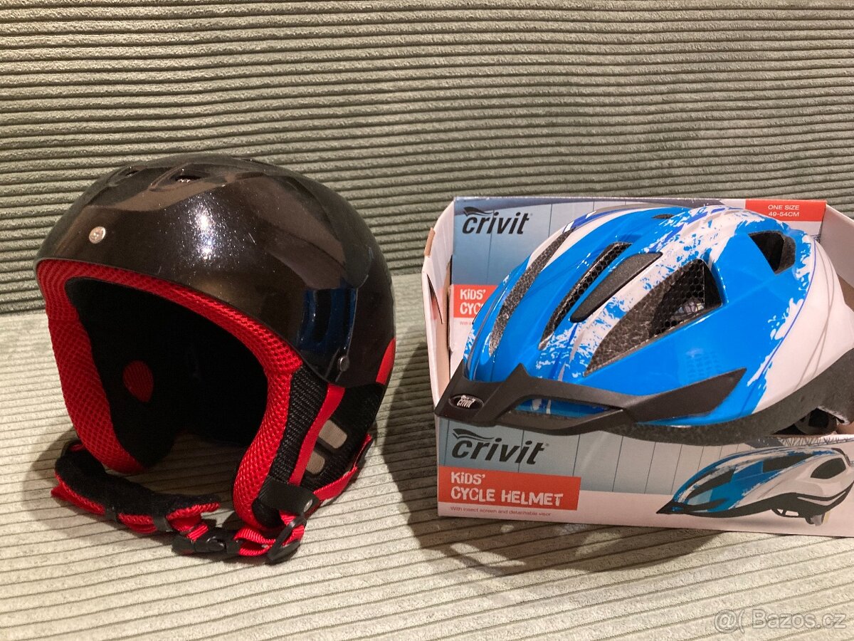Prodám dětské přilby na kolo a lyže. Lyžařská přilba velikost 51-54cm. Cyklistická přilba 49-54cm.Používáno jednu sezonu. Ve výborném stavu.