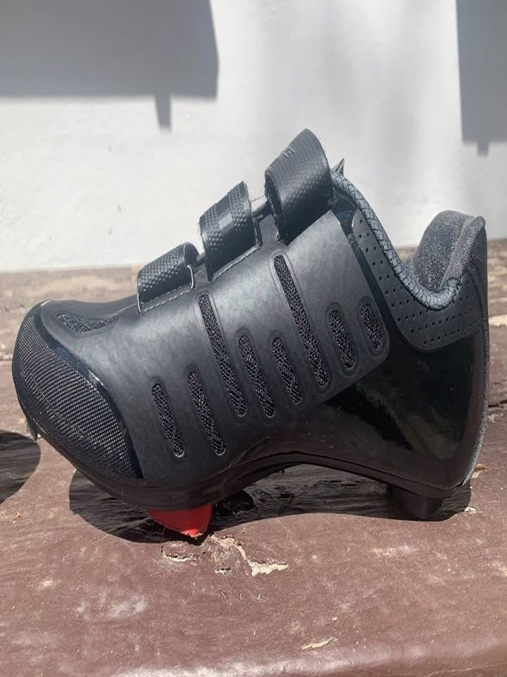Prodám silniční cyklistické tretry značky FORCE ROAD LASH. Černá barva. Velikost: 40, svršek: syntetická kůže podešev: nylonový kompozit, index tuhosti: 6, zapínání na 3 suché zipy, vyztužená pata a špička, špička chráněna gumovým okrajem proti okopu, vzdušné otvory zajišťující skvělou prodyšnost, anatomická vložka, vnitřní část z protiskluzového materiálu, LOOK, SPD-SL kompatibilní, reflexní prvek na patě. Prodávám je i se zarážkama. Měla jsem se jednou na nohách. 1300 Kč