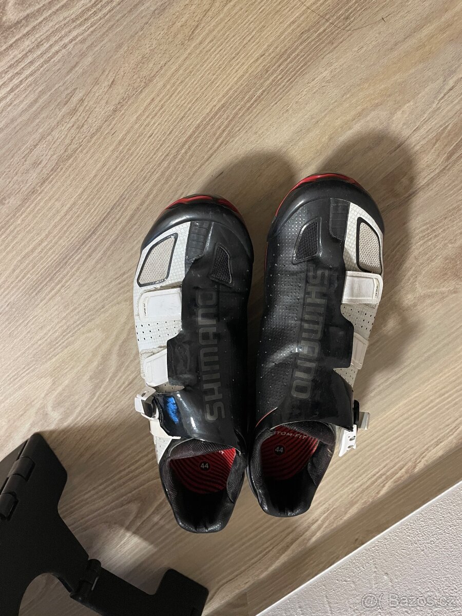 Prodám silniční tretry SHIMANO č.45 - [12.2. 2026]Model RO88. Tretry jsou lehce použíté a ve velice dobrém stavu. Možno koupit i s pedály Shimano PD-5800. POUZE VOLAT. Klimkovice 604174398. Tretry 950,-pedály 700.