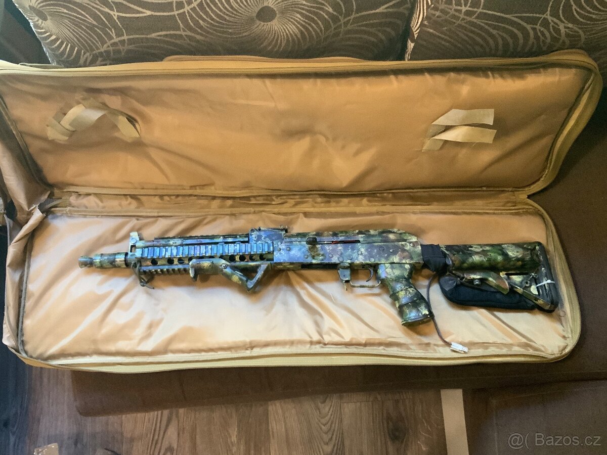 Zbraň je elektrická (AEG), plně funkční, používaná rekreačně. Má camouflage úpravu, RIS lišty a přední rukojeť pro lepší úchop. Součástí je i optika a tlumič (mock).