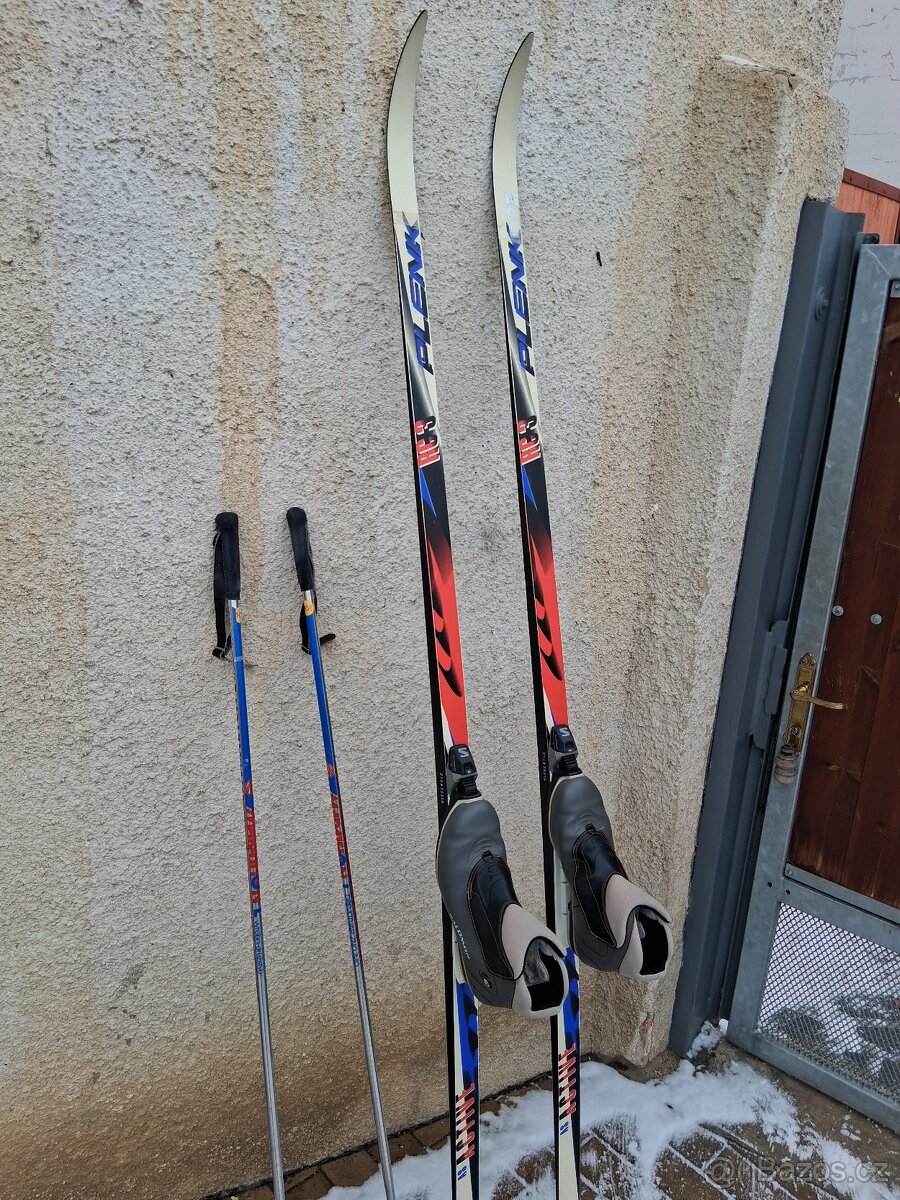 Prodám běžky 210cm vázání SNS,boty velikost 44,5 a hole.. zpětné šupiny na skluznici(nemusí se mazat) plně funkční a zachovalé, vhodné pro začátečníky..