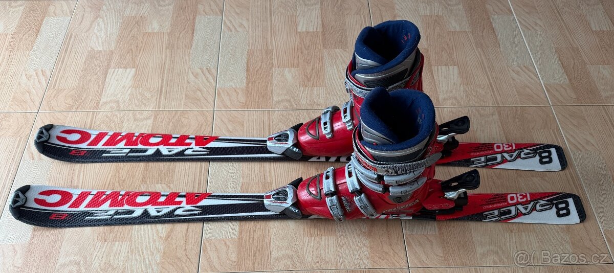Dětské lyže Atomic Race 8 – délka 130cm + lyžařské boty Tecnica pro délku chodidla cca 255mm.