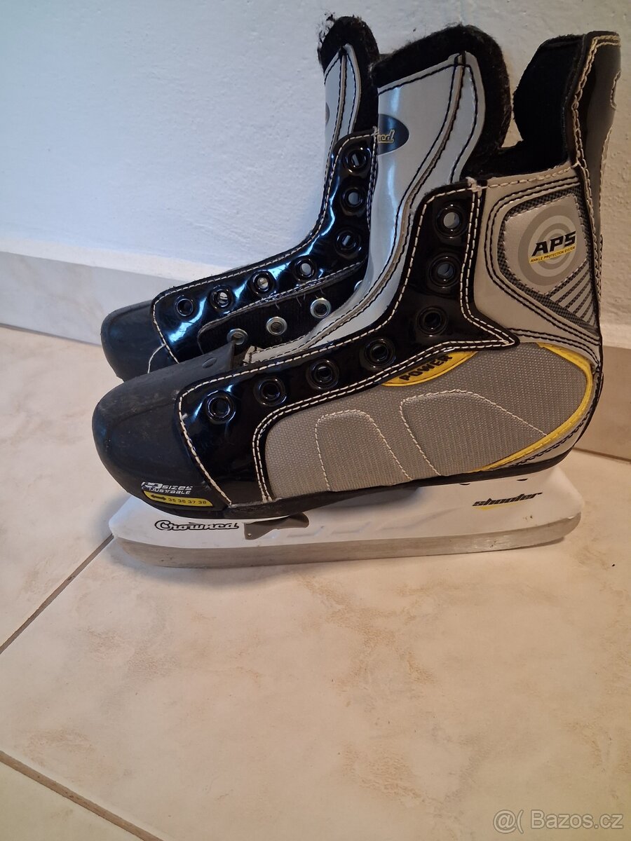 BRUSLE vel. 36 BAUER VAPOR X50 - [16.2. 2026]kupované nové, nošené 2 hokejové sezóny hrané brusle Bauer Vapor X 50,stélka 22,6cm, funkční,okopané, zadní jazyk zlomený, kosmetické vady, PC 2900 Kč, nyní cena 500 Kč + doporučené poštovné