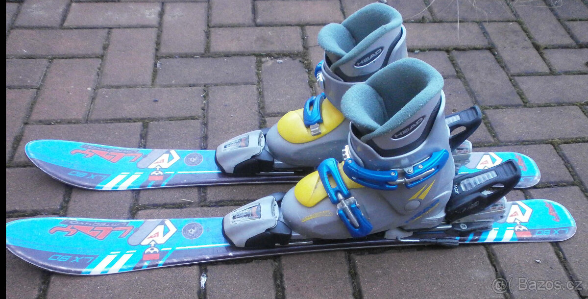 Dětské lyžičky s botami zn. HEAD, délka stélky 19 cm, možno prodat i samostatně. Cena je za komplet.