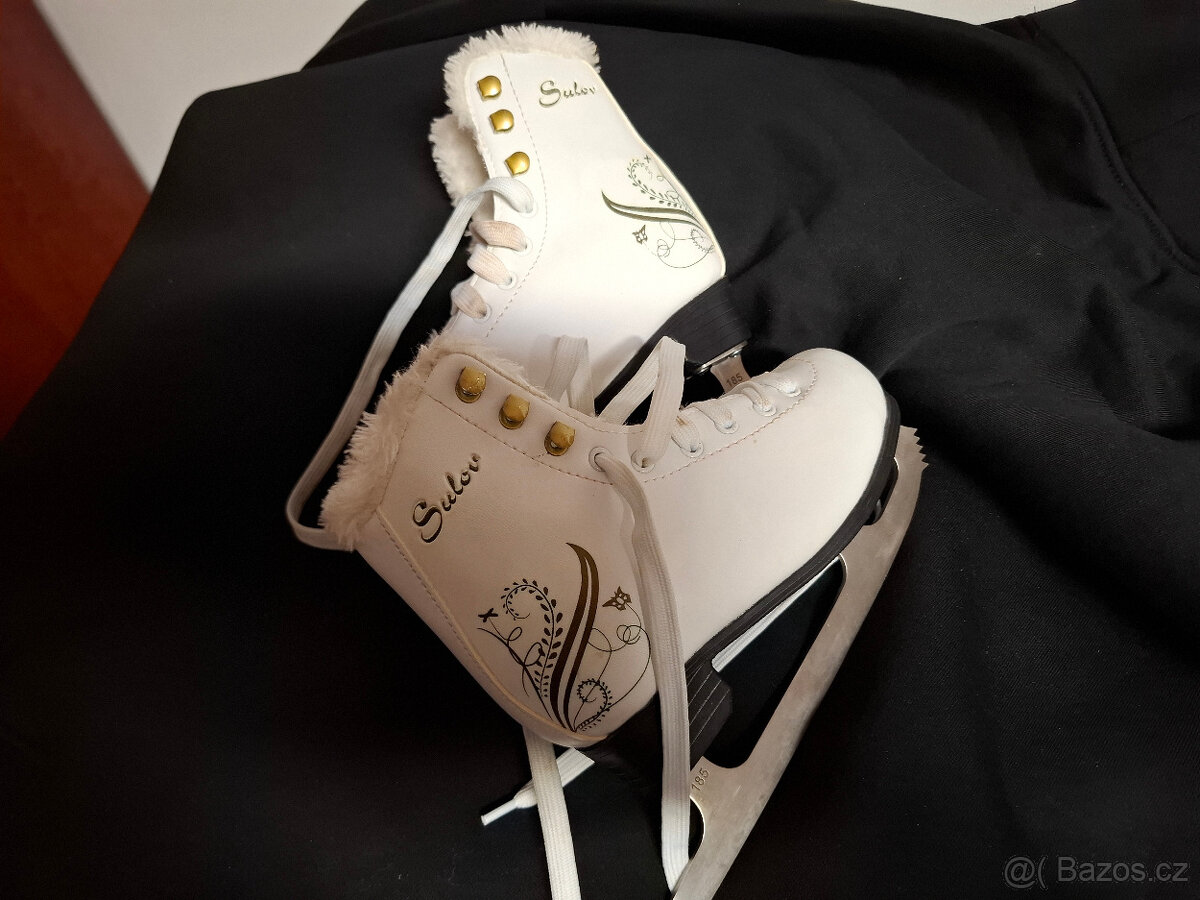 Luxusní dívčí brusle Sulov Flora vyráběné z vysoce kvalitních materiálů doplněné o inovativní design. Kvalitní bota ze syntetické kůže je postavena na nový tvar podrážky a nůž z nerezové oceli s certifikátem TÜV, zaručující výborné jízdní vlastnosti. Díky robustnímu šněrování snadno upevníte botu tak, aby pevně obepínala chodidlo a oblast nártu. Měkká bota s velmi hřejivým kožíškem je vyráběna s využitím moderních technologií tak, aby působila při jízdě přirozeně a maximálně eliminovala vznik otlaků. Dcera je měla 2 x na ledě, jsou jako nové. Původní cena byla 1300kč. Nyní za 680kč