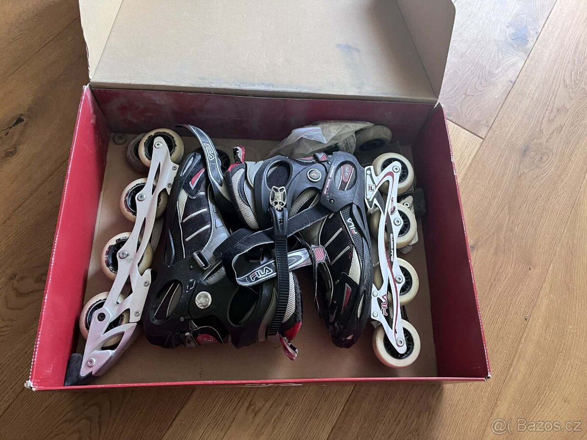 Prodám kvalitní pánské inline brusle Fila (velikost 45), používané, ale plně funkční. Pohodlné, pevná konstrukce, kolečka i brzda v dobrém stavu. Vhodné pro rekreační bruslení.