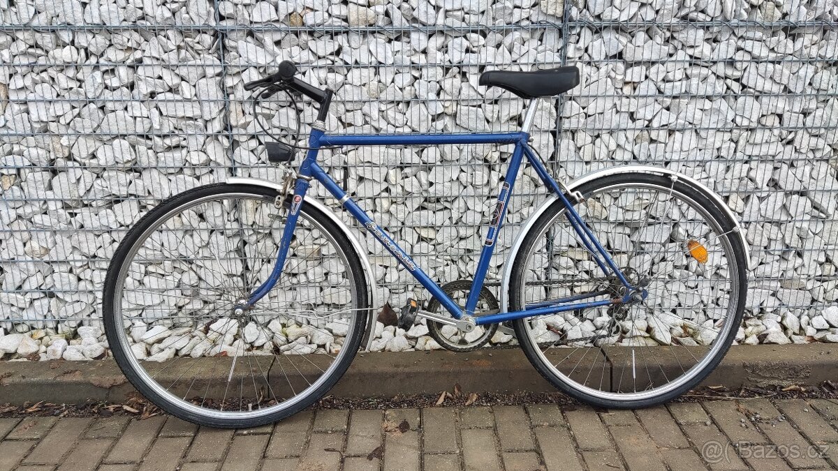 Kolo má tři převody vzadu, zánovní brzdové špalky a šlapky, novější přední pneu. Vhodné třeba do hospody, na dojíždění do práce atp. Cena prakticky za cenu šlapek. Předání Chrast u Chrudimi.
