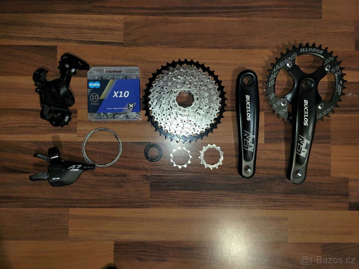 Dobrý den prodám kompletní přehazovačku 1x10. Sada obsahuje kliky 170 mm na klasicky čtyřhran s převodníkem 38T, včetně šroubů na uchycení převodníku. Řadící páka s objímkou včetně lanka a koncovky, řetěz 10 rychlostí včetně rychlospojky, přehazovačka 10 rychlostí i s ovládáním (s objímkou) a kazetu na ořech HG rozsah zubů 11-42T včetně zámku na ořech. Sada obsahuje vše potřebné pro pohon 1x10 není třeba nic dokupovat a je kompatibilní na většinu kol. Má dostatečný rozsah převodu do rychlosti i strmých stoupání. Nemusíte přemýšlet jak řadit přesmíkačem a na meniči. Má velmi snadné a intuitivní ovládání. Výměnu zvládne opravdu každý