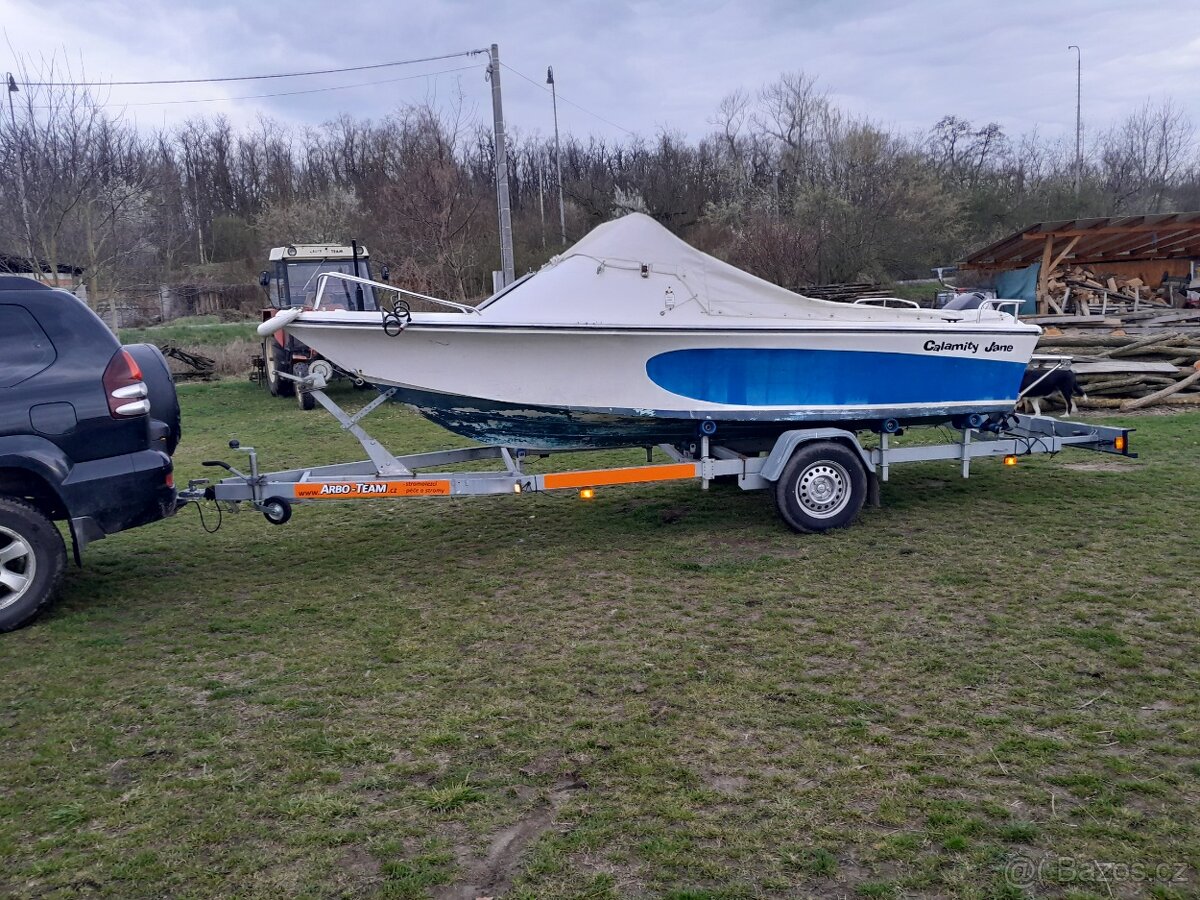 prodám 5ti metrový motorový člun osazený čtyřtaktním Mercury motorem 15HP se startérem + silný elektromotor Minikota, 2x persenik včetně přepravníku s novou STK. Používal jsem při opravě chaty, naložil jsem na ni bez problému půl palety betonu.