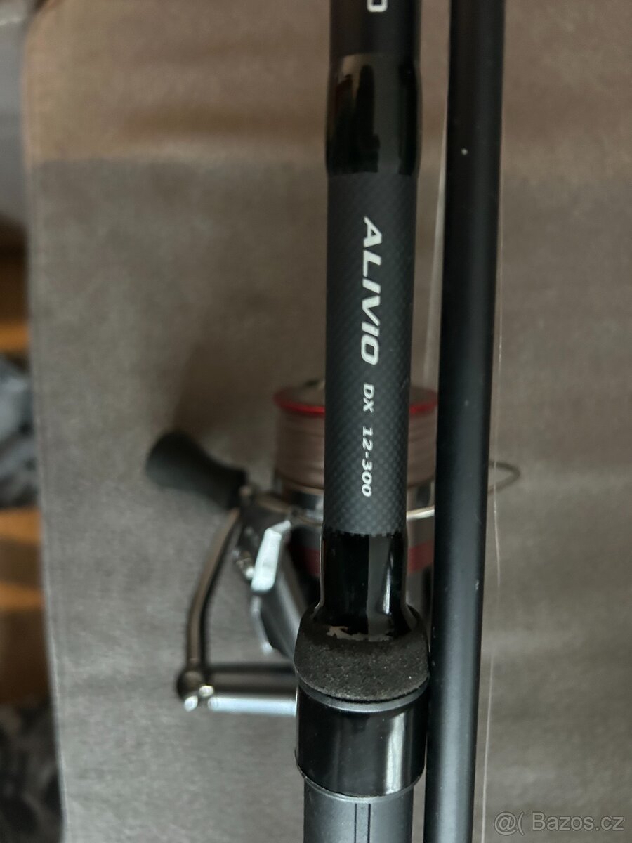 Prodám karbonový kaprový prut Shimano Alivio DX12-300 2 dílný včetně navijáku a pouzdra.Naviják DAM Quick nautic 3600.Málo použitý.Akce prutu 3,5lb.