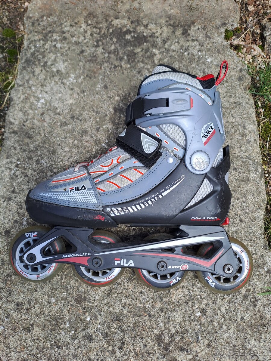 Prodám kolečkové brusle Fila, stavitelná velikost 35 - 38. Cena dohodou.
