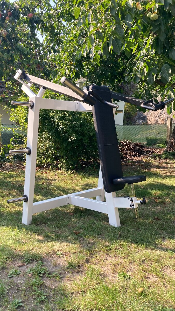 Posilovací stroj na ramena - prsa shoulder press od České firmy Lax. Topový stav