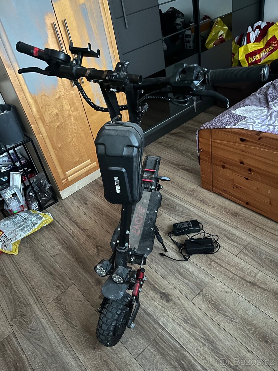 Mám k tomu 3x nabíječku (2x 2ah a jedna 4ah), 2x kolo s duší, jsou na tom větší brzdy, držák na telefon, brasna co je na koloběžce + další 2 brašny k tomu, řídítka 72cm, úprava plynu pomoci pirate vylepšováku, předek i zadek na vzduhových tlumičích, našla bych určitě i náhradní blinkry. Svítí, troubí, jede jak má.