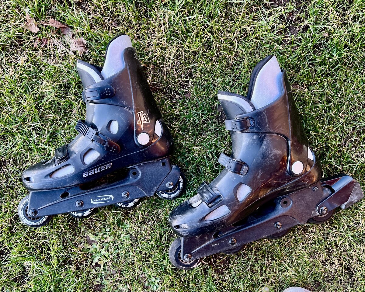 Prodám kolečkové brusle velikosti 45-45. Kdysi občasně použité, teď už nám jen leží ve skříni. Možnost osobního odběru, nebo po vlastním zaplacení poštovného, mohu poslat.