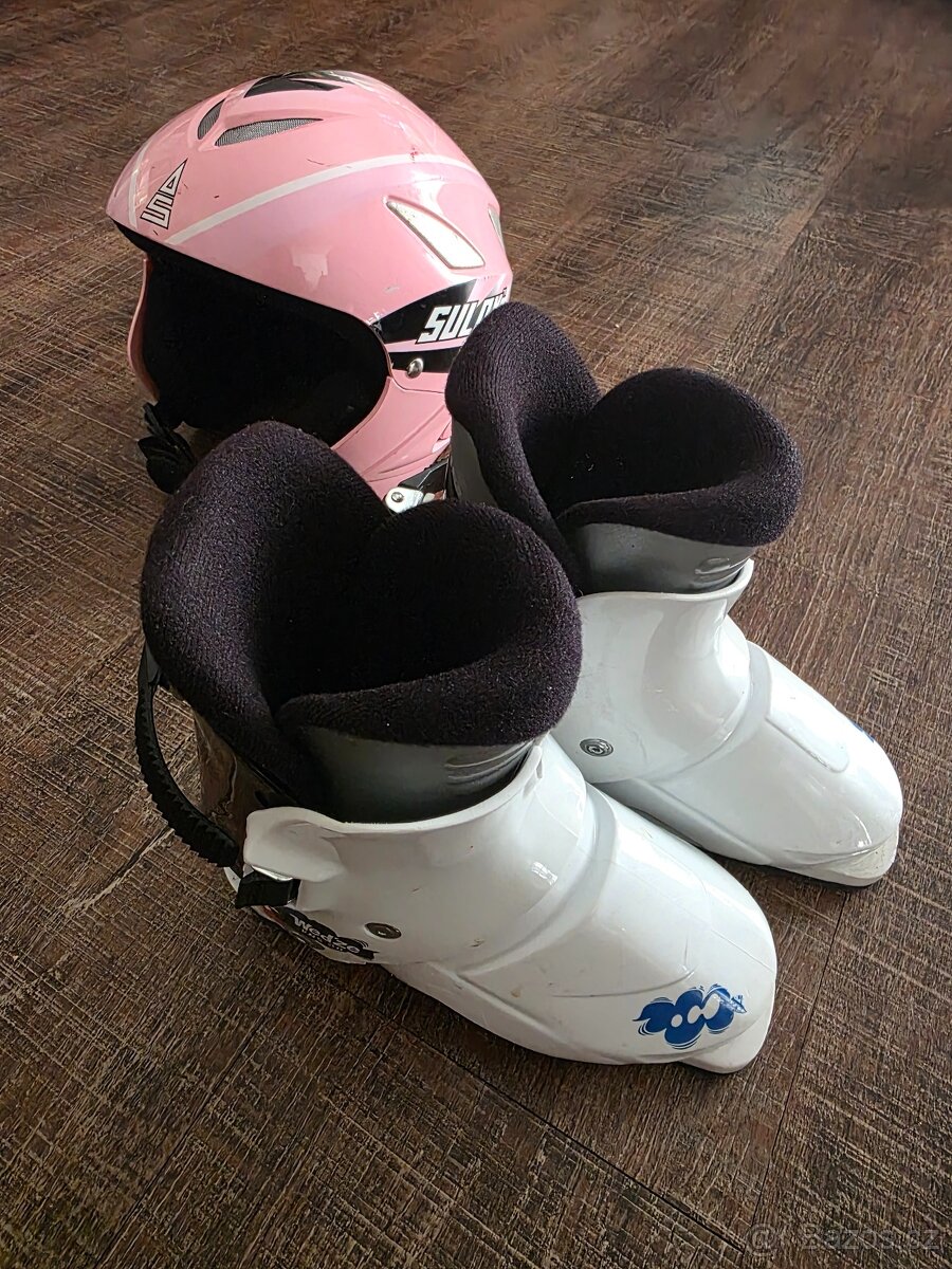 Prodám dětské sjezdové boty Wedze délka 221mm. Cena 300 Kc. Přidám dětskou helmu XXS.
