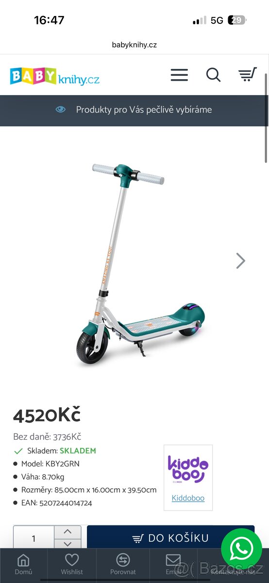 Prodám dětskou elektrickou koloběžku Kiddoboo, kupovanou vloni na Vánoce pro syna,ale nevyužije.