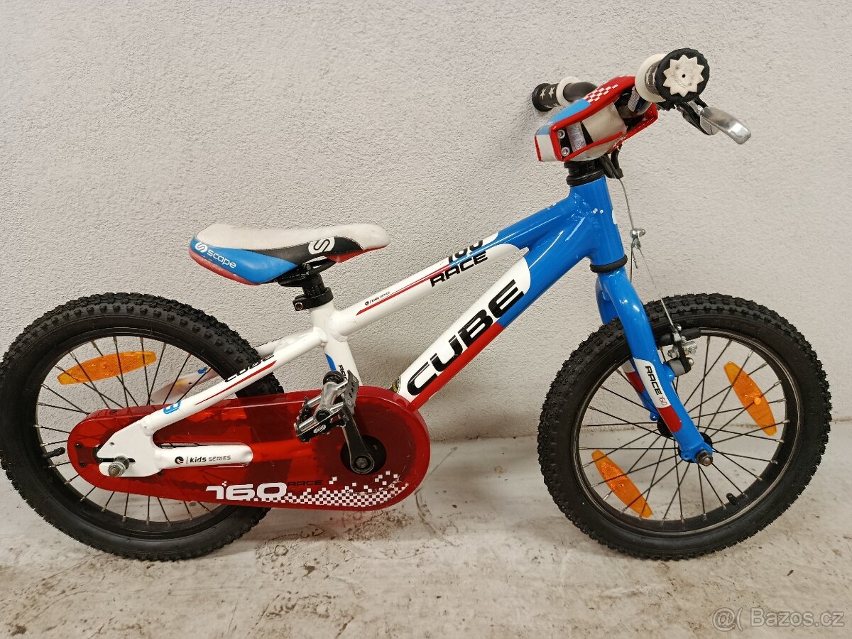 Prodám naprosto boží kolo Cube KID 160. Lehké kolo cube 16" na velmi lehké hliníkovém rámu, s krytem řetězu pro nejmenší cyklisty v nádherném designu. Kolo je po servisu seřízené, promazané, nové pláště.