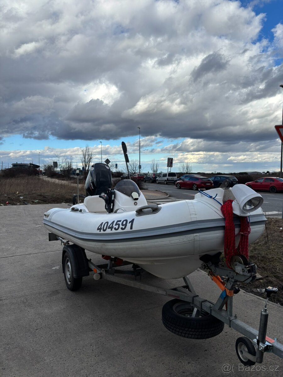 Prodám motorový RIB člun LY380 s vlekem, materiál HYPALON, motor Mercury 50HP, najeto pouze 30 motohodin, provoz r.2022, nádrž nerez 53 l, 4 osoby, délka 3,8 m, šířka 1,8 m, velmi malá spotřeba, osvětlení paluby, osvětlení úložných prostor, opalovací palubní deska, navigace a echolot Garmin, lodní vysílačka, rádio, nafukovací kompresor, hydraulické řízení. Vlek 130km/h stk do 13.9.2027.
