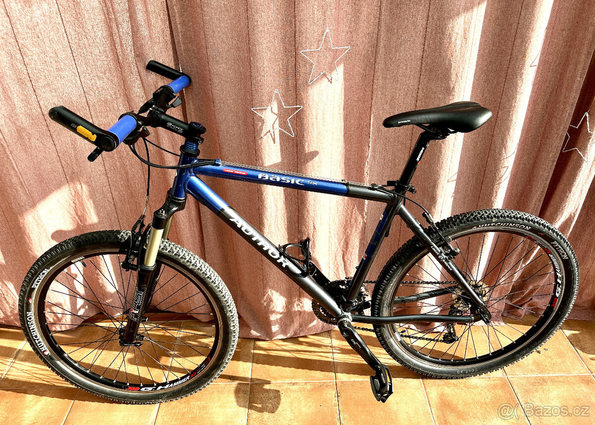 Nabízím zachovalé kolo Author Basic SX, počet převodů 3x9, většina komponentů vyměněna za lepší: vzduchová vidlice RST F1RST Air, kola Remerx Grand Hammer s ložisky Novatec, pláště lehké a rychlé Hutchinson Python, brzdy Tektro, páky Deore M590, řazení Acera páky, přesmykač Deore, přehazovačka Deore Shadow M592, kliky Deore Hollowtec M590, kazeta Deore HG50, modré doplňky - šrouby, podložky, gripy. Ježděno manželkou, ale velmi málo jeté, poslední dobu vůbec nevyužité. Osobně Olomouc.