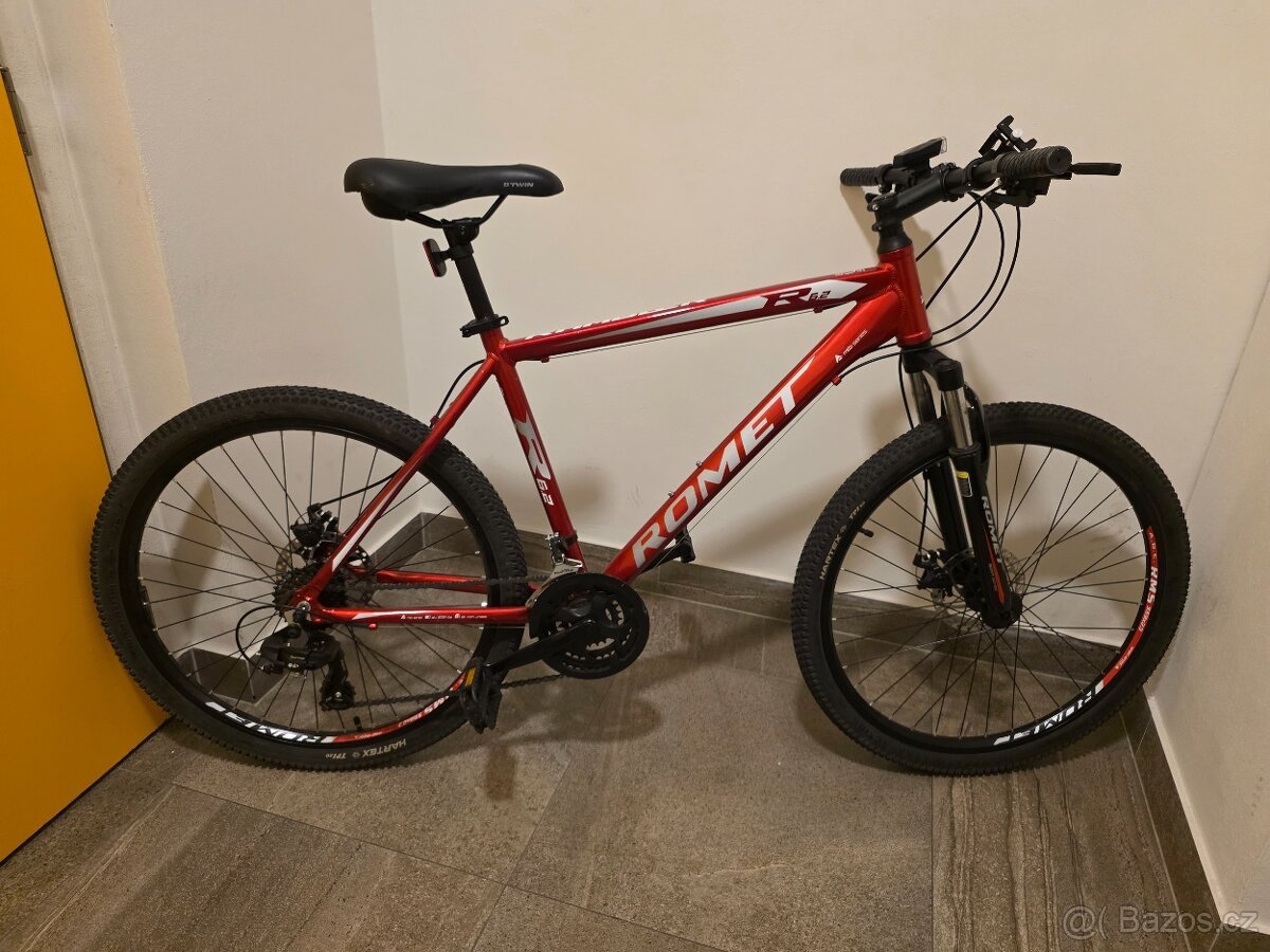Prodám dvouleté horské kolo ROMET Rambler R6.2, velikost L/19". Koupil jsem ho nové v Alze a používal jsem ho pouze v létě na kombinaci lesa a štěrku. Celkem najeto asi 500 km. Ve skvělém stavu, vše funguje tak, jak má. V případě zájmu přidám zdarma helmu střední velikosti.