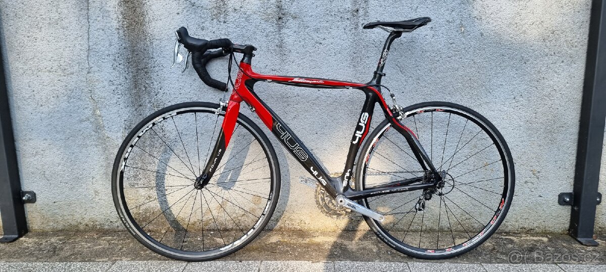 Prodám celokarbonové kolo 4US Indianapolis, hmotnost 7,7 kg. Převody 2x10, řazení, brzdy, kliky 172,5 vše sram rival. Náboje remerx 139, vzadu ráfek remerx alcyon, vpředu remerx whizz. Pláště Continental ultrasport 23. Řetěz sram pc 1071