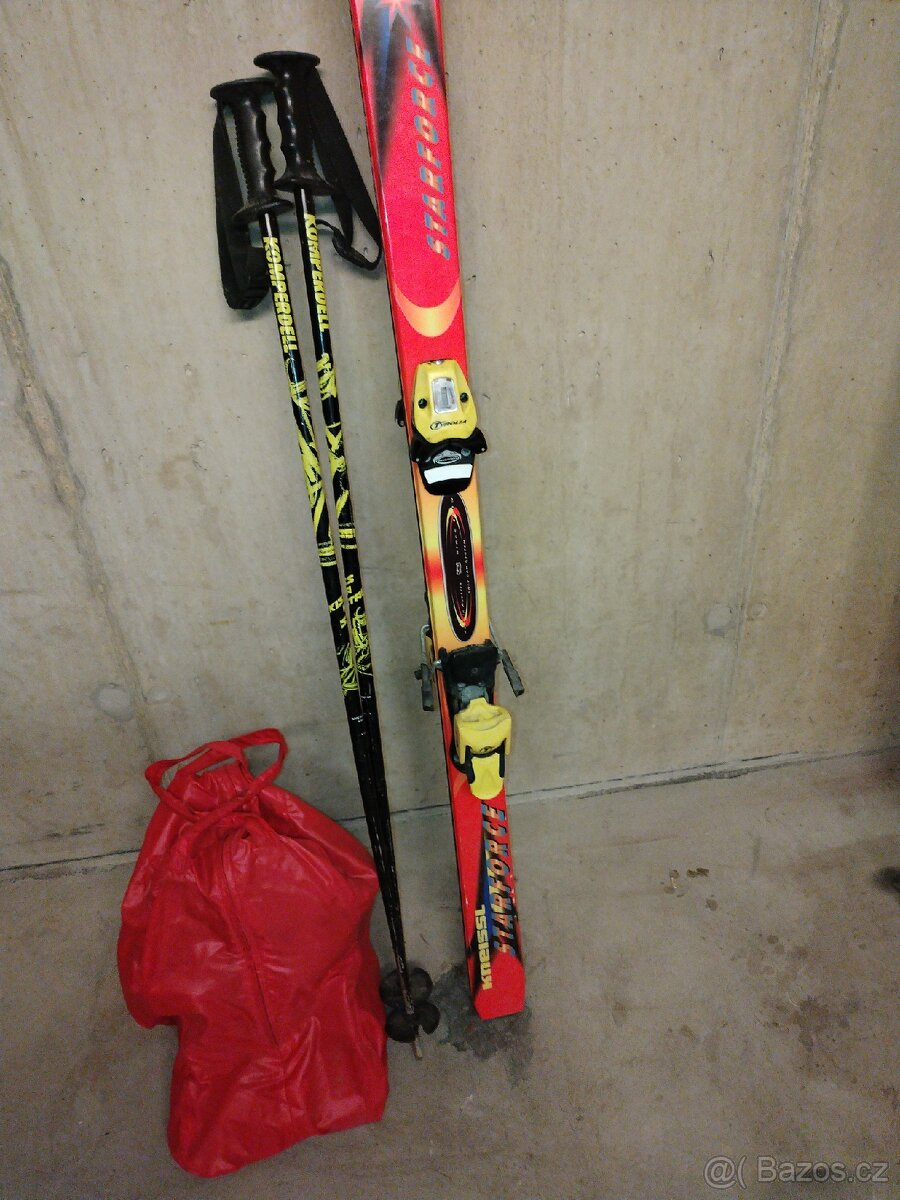 Prodám lyže s vázáním výška 160cm, hůlky a boty velikost 4-5