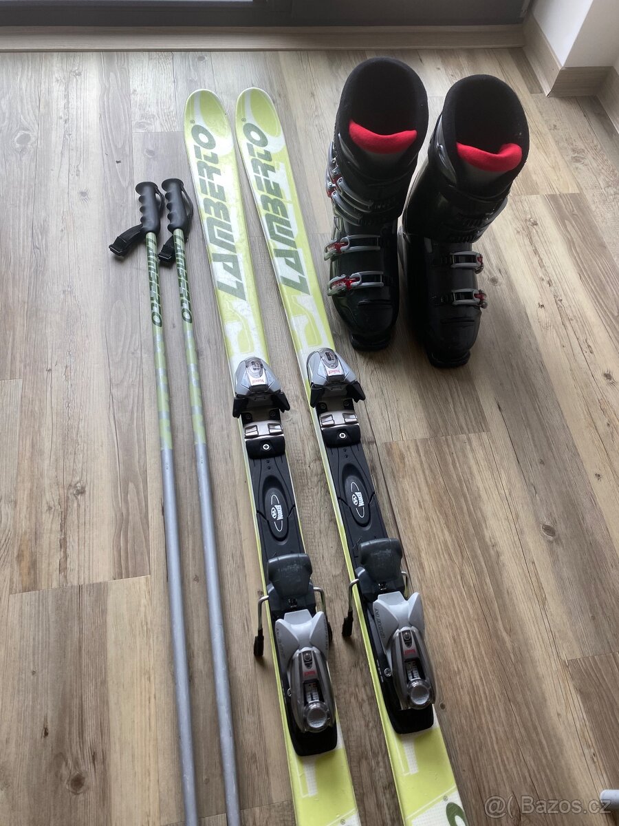 Prodám komplet lyže Lamberto 168 cm, hůlky 125 cm a lyžáky Dalbello DX556, velikost 29. Vše je opravdu starší, poměrně hodně poškrábané, skluznice také se škrábanci a vyschlé. Vše viz foto. Cena za celý set je 400 Kč. Třeba ještě někomu poslouží. Vzhledem k ceně preferuji osobní odběr Dříteč. Po domluvě předání Pardubice nebo Hradec.