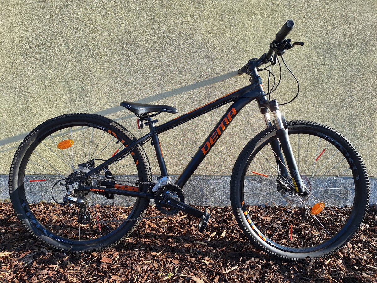 Pevné dětské horské kolo DEMA PEGAS 3 2021 black-orange - 15". Výška sedla od země 74 až 97cm. Průměr kol 27.5" cca 68cm. Řazení 2x8. Stojan. Dobrý stav. Koupeno 6.2021, původni cena 13500-, nyní jen 4500,- Jarní úklid...