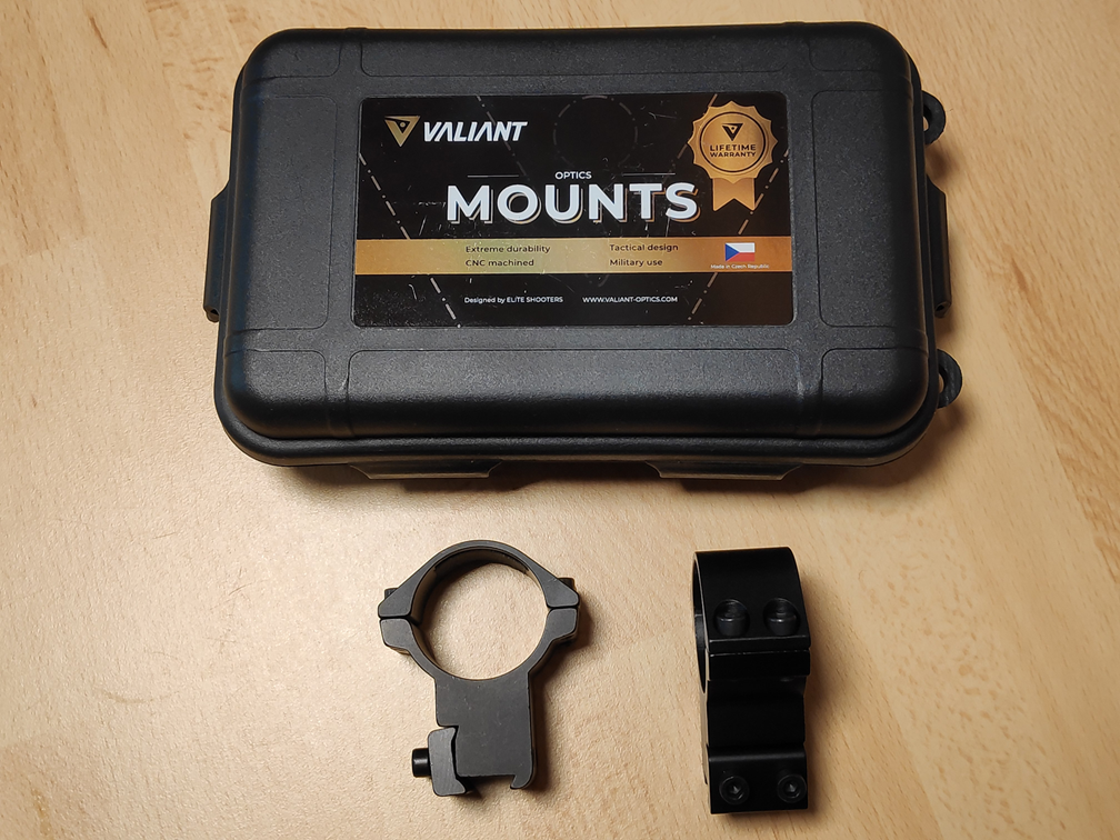 Kroužky Valiant, dvoudílná montáž, průměr tubusu 30 mm, montáž na rybinu 11 mm, výška 20 mm. Nové, nepoužité, špatně zvolená výška. Cena 1000,- Kč