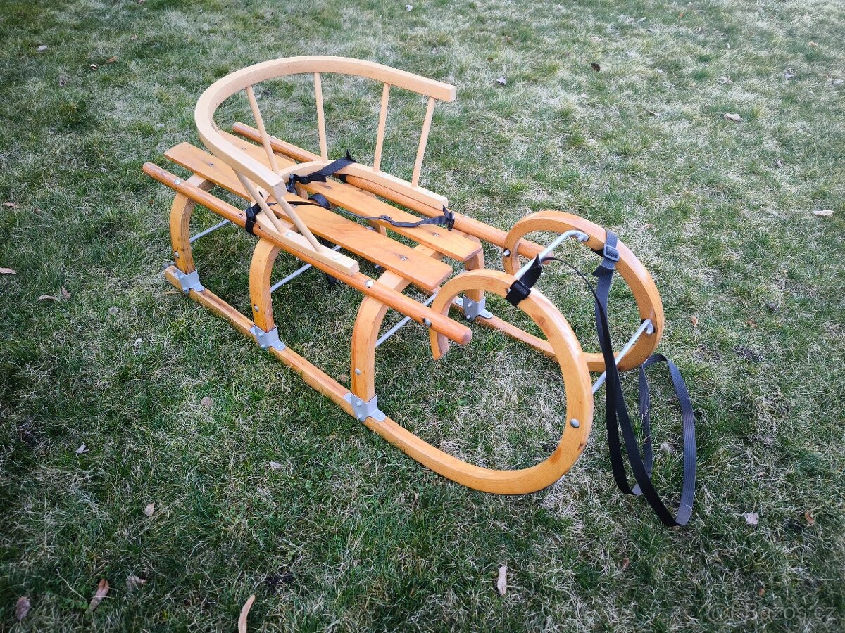 Nabízím historické jasanové sáně. Cca před 15-ti lety provedena amatérská renovace spočívající v obroušení dřeva a opatření novým bezbarvým nátěrem, odrezení a natření kovových dílů. Skluznice jsou nové z nerezové pásoviny. Ohrádka pro dítě je neoriginální novodobá. Délka sedáku 90 cm, výška 30 cm.