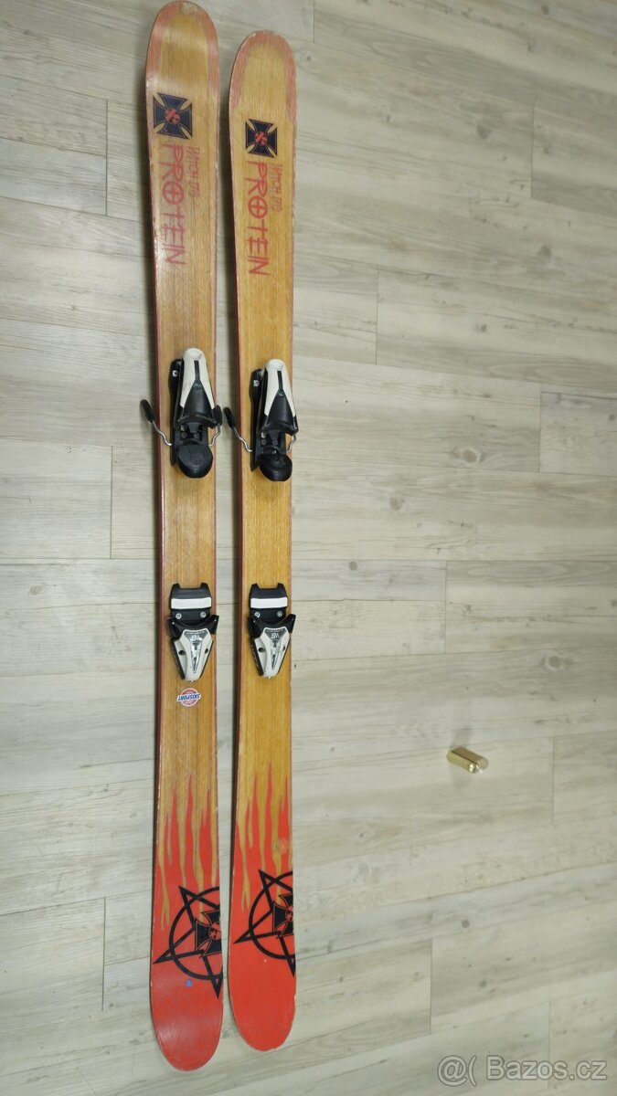 Lyže Protein (170 cm): Stabilní lyže s dřevěným jádrem, vhodné pro postavu cca 175–185 cm. Skluznice a hrany v dobrém stavu.