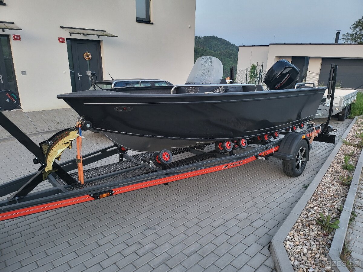 Použitá rybářská loď RiverFox 470 + motor + vlek - [4.3. 2026]K prodeji laminátová rybářská loď River Fox 470, motor Mercury 10 HP EFI, el. startér, pravidelný autorizovaný servis, velmi zachovalá, najeto pouze 85 mth.!! V provozu od r. 2020.