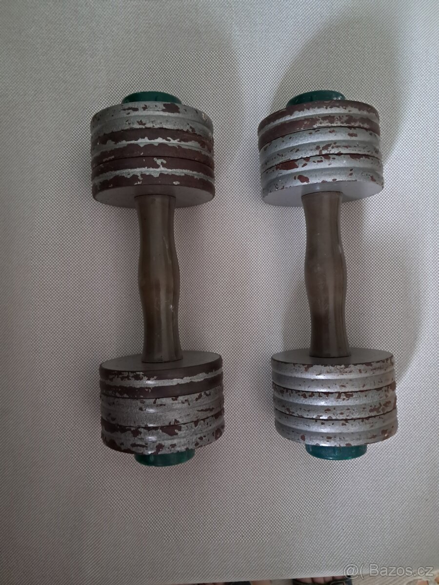 Prodám retro nakládací kovové činky do 2 x 5 kg.