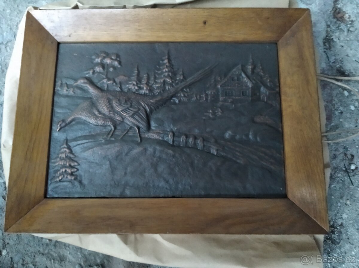 Prodám bronzový obraz bažanti v rámu rozměr 37x28cm, cena 1000kc